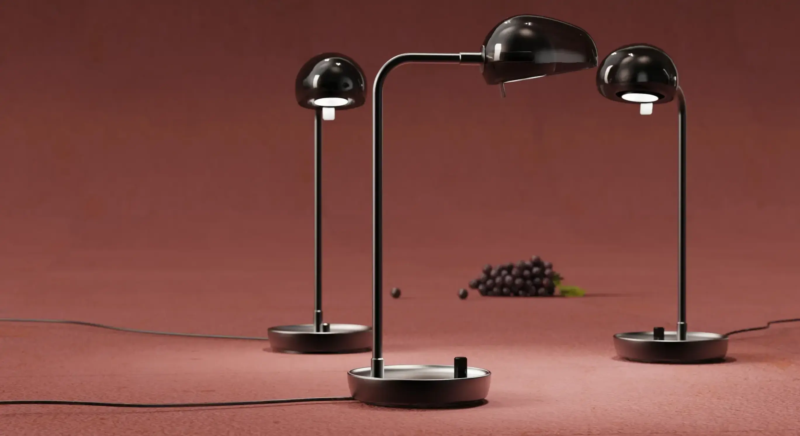 Grape supplied a table lamp by Grape, inspired by the aesthetics of the 1930s, embodying modern technology.